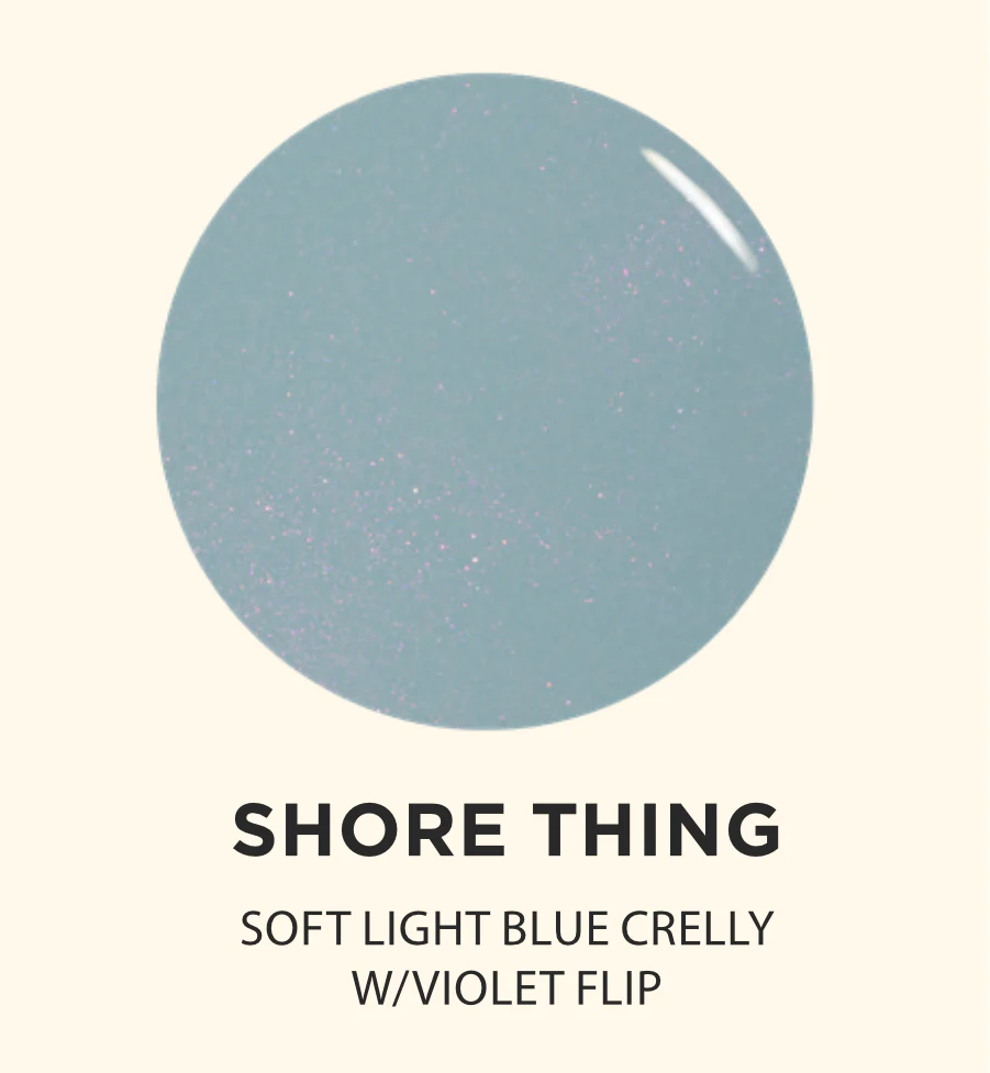Descubre la elegancia sutil de Shore Thing, un sofisticado tono azul grisáceo que evoca la tranquilidad de la brisa marina y la suavidad de la arena mojada. Su fórmula Breathable permite que el oxígeno e hidratación lleguen a tus uñas, fortaleciéndolas con cada aplicación y ofreciendo un acabado impecable.